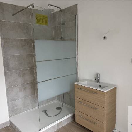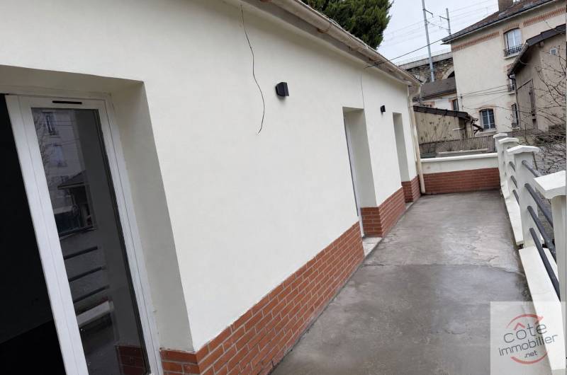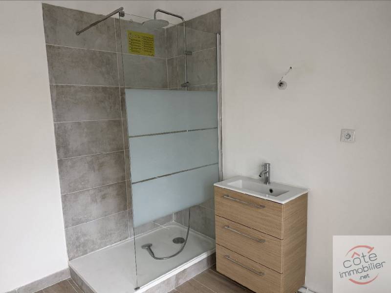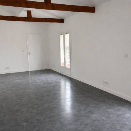 A l étage une pièce de vie lumineuse d environ 25m² acceuille le salon et s ouvre directement sur une agréable terrase, offrant un espace de vie convivial, au calme et sans vis à vis