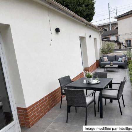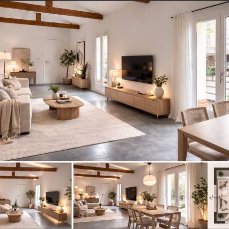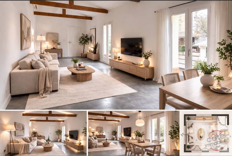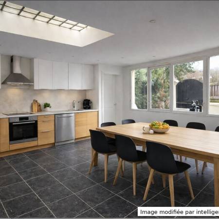 Au rez de chaussée , une cuisine dinatoire de 18m² et un plateau d environ 42m² aujourd hui ouvert permet la creation de 3 chambres idéal pour une vraie configuration familiale ou un espace nuit bureau parfaitement organisé